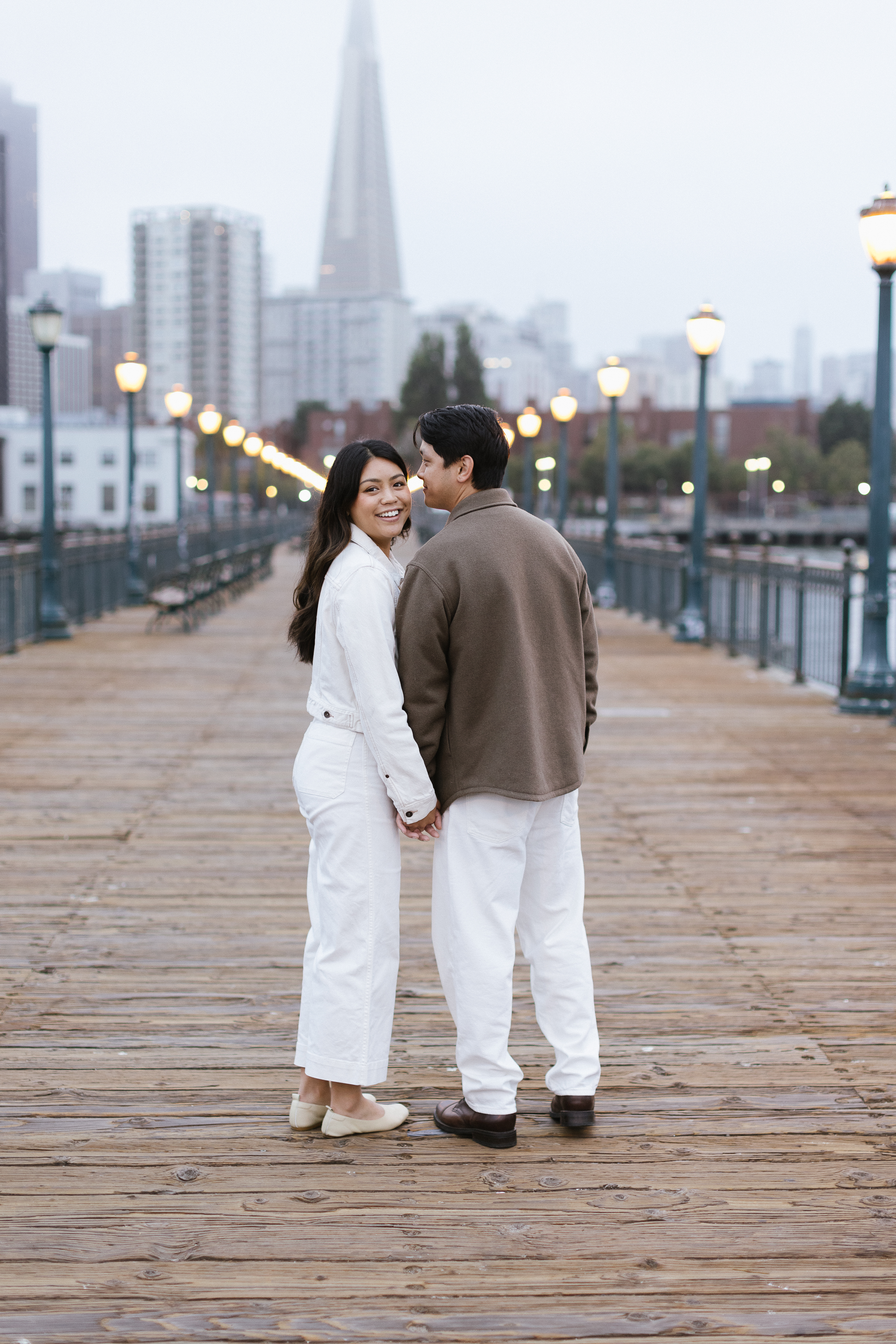 • Movement Prompts: Walking the center line of Pier 7, a slow sway by the railing, or coffee-cup cuddles by the Ferry Building keep things candid.
